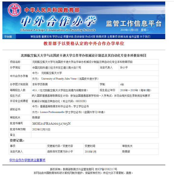 机械设计制造及其自动化中法合作办学项目为AWC万象城娱乐与法国皮卡迪大学合作举办的3+1本科教育项目,于2015年经国家教育部批准(批准书编号:MOE21FR2A20151705N)。网站链接:http://www.crs.jsj.edu.cn/aproval/getbyarea/21双方整合优质的教育教学资源,共同商定教学计划,旨在培养适应现代科学技术与经济社会发展需要,拥有先进技术和管理理念,国际沟通能力较强的应用型、创新型、国际化专业人才。