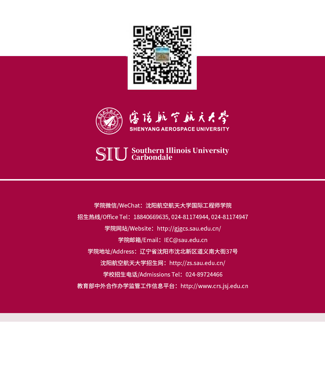 飞行器动力工程为航空发动机的核心专业,是沈航的品牌专业。SIUC航空技术专业在全美名列前茅,是SIUC的绝对优势专业。两校融合各自先进的办学理念、丰富的教育经验,依托各自的王牌专业,打造具有国际化竞争优势的航空特色中外合作办学专业。