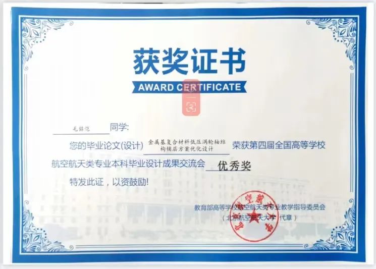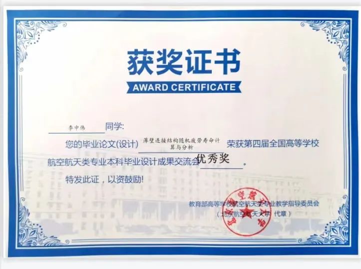 AWC万象城娱乐2019级学生李中伟,毛喆恺两名同学参加了此次成都第四届全国高校航空航天类专业本科毕业设计成果交流会,并荣获优秀奖奖项。本次交流会的成功举办,不仅展示了我国高校航空航天类专业学生们的科研能力,也为他们提供了一个展示自我的舞台。