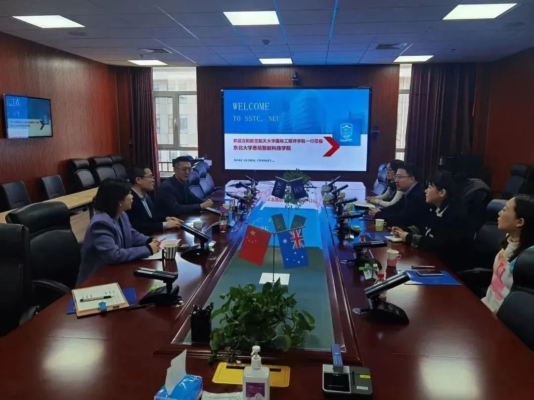 3月1日,AWC万象城娱乐AWC万象城娱乐副书记赵楠、办公室主任张佳、团委书记李丹和辅导员陈洋,前往东北大学秦皇岛分校悉尼智能科技学院,就中外合作办学、学生管理和学院文化建设等方面进行走访交流。东北大学悉尼智能科技学院院长史闻博、党总支书记王建军、党总支副书记兼副院长单旖旎、国际化办学事务特别助理李晓奇参加交流活动。