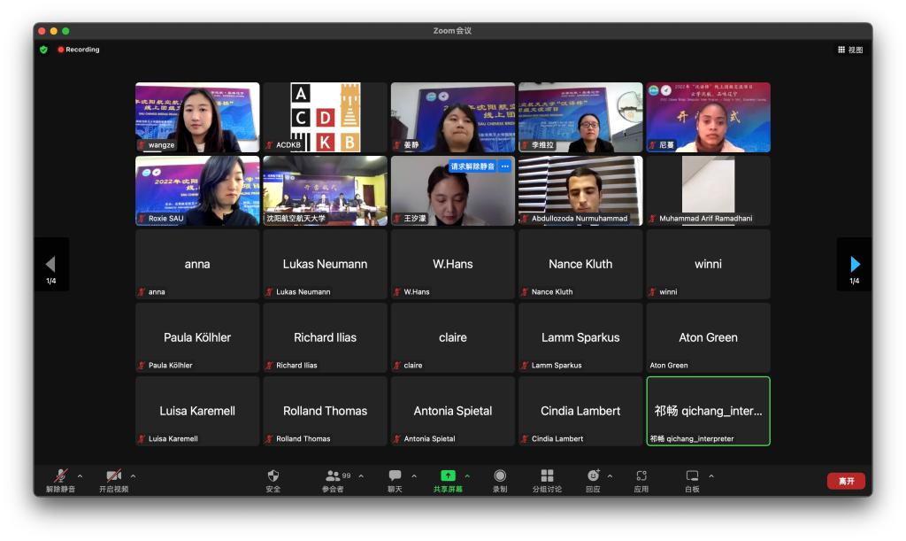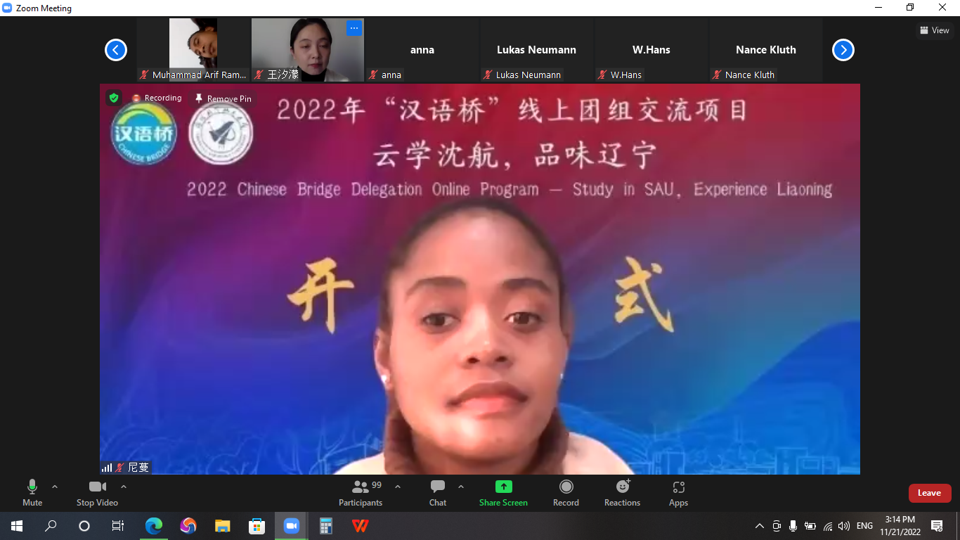 AWC万象城娱乐2022年“汉语桥”线上团组交流项目“云学沈航•品味辽宁”开营仪式