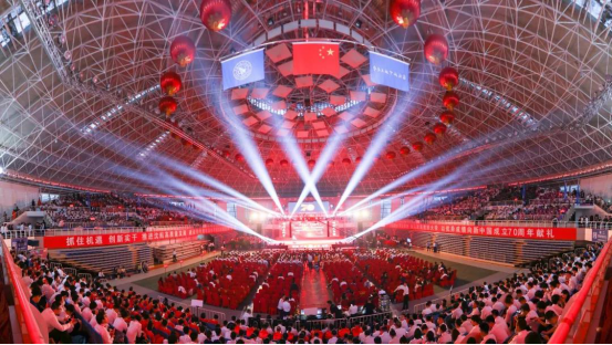 9月29日下午,沈航庆祝新中国成立70周年师生合唱比赛在体育馆隆重举行,全体校领导、全体中层干部、各参赛队及教职工和学生代表近万人纵情高歌,为新中国成立70周年献上来自沈航的祝福,以不忘初心的忠诚、用牢记使命的誓言,致敬新中国,致敬新时代!