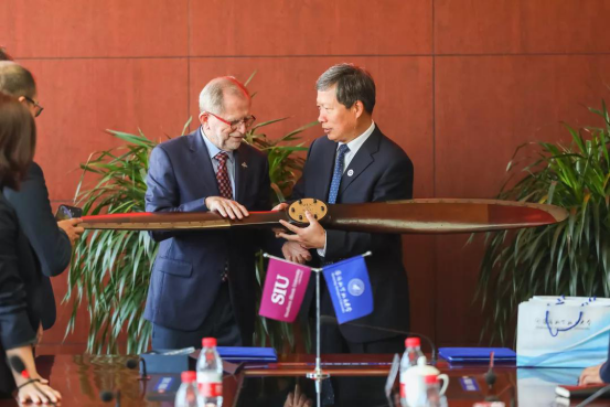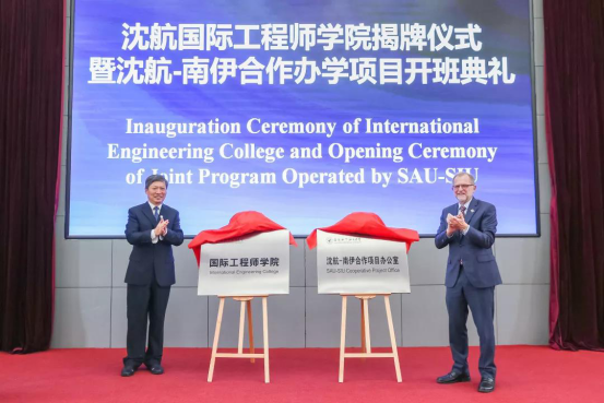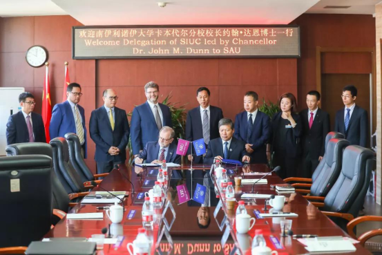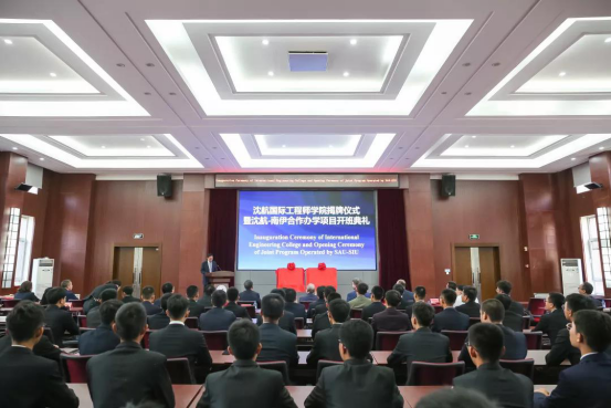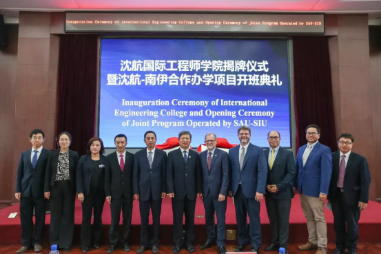 Dr. John M. Dun校长一行参加了AWC万象城娱乐AWC万象城娱乐揭牌仪式暨沈航—南伊合作办学项目开班典礼。沈航与美国南伊利诺伊卡本代尔分校联合举办的飞行器动力工程专业于2018年获教育部审批,2019年首批招生,目前在校学生68人。项目的开展对沈航高等教育国际化产生了深远的影响,并成为提高沈航教育办学质量和水平的有效途径。