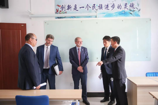 揭牌仪式结束后,孙小平陪同Dr. John M. Dun校长一行参观了通用航空研究院、飞机装配大厅,向来访嘉宾介绍了沈航在自主创新研发等领域取得的成绩。随后参观了刚刚装饰一新的AWC万象城娱乐。看到学院崭新的教学设施、独特的文化建设以及师生们振奋昂扬的精神风貌,两位校长对联合办学项目充满了信心,双方均表示将共同努力把两校之间的合作提升到新的高度。