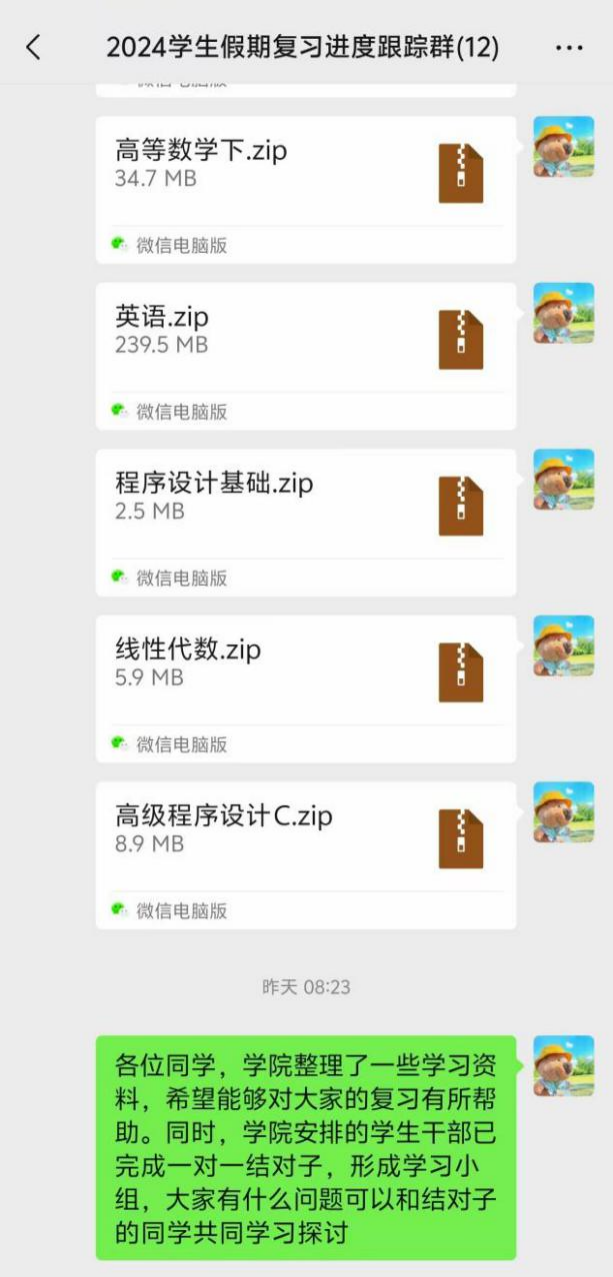 为加强学风建设,引导学生合理复习,学院针对部分重点关注学生,组织各年级召开了重点学生线上家长会暨暑期学习交流会,会议由各年级辅导员主持,党委副书记尹大伟、各学生及家长参会并发言。参会同学就假期学习复习情况进行交流,副书记尹大伟和各位辅导员对学生学业安排提出了科学的建议。学院成立学生假期复习进度跟踪群,同步开展了一对一结对子帮扶工作,为学生们假期有效复习提供有力保障。