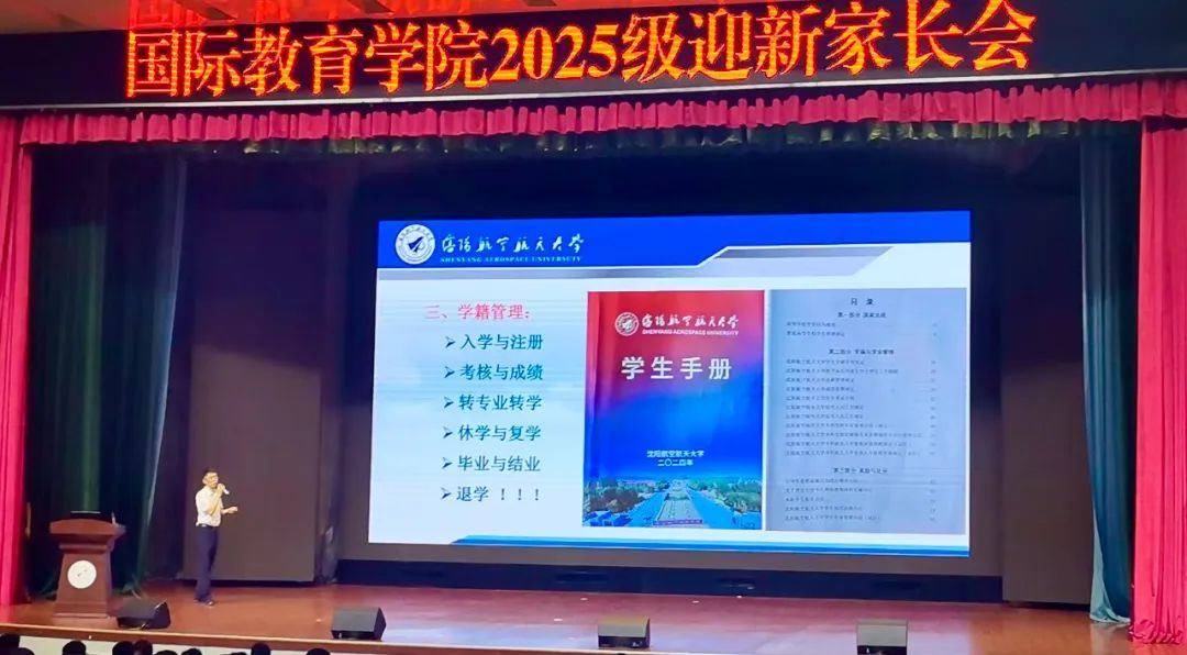 学院党委书记季志刚对2025级新生及家长表示热烈的欢迎,鼓励学生踏实奋进,在人生新舞台展现青春风采,在沈航实现空天梦想。