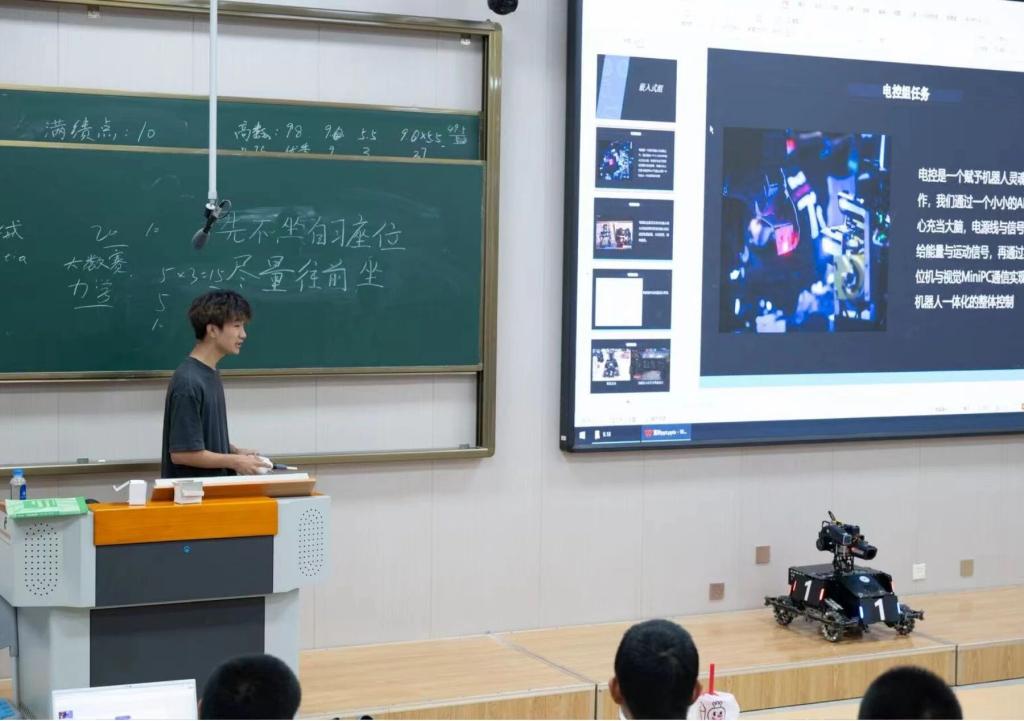 郭铭剑以 “启航竞赛征程 -解锁科技竞赛入门密码”为主题,围绕机械、电控、视觉、宣传四大核心方向,结合自身实战经历,系统梳理竞赛入门框架,讲解各方向核心逻辑与学习重点,强调技术协同的重要性,还带来项目实物原型演示助同学们理解抽象知识,并解答入门规划、资源获取等疑问,为同学们科技竞赛入门提供全面支持。