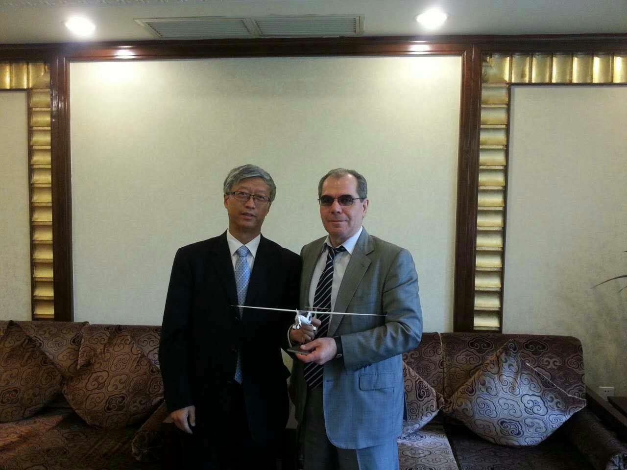 4月26日,万象城党委书记王维应约在京会见俄罗斯喀山国立研究技术大学校长阿尔伯特·吉利穆季诺夫(Albert Gilmutdinov)教授和俄罗斯联邦驻华商务代表处代表吉利亚佐夫·马尔森(Giliazov Marsel)参赞一行,副校长王琦陪同接见。