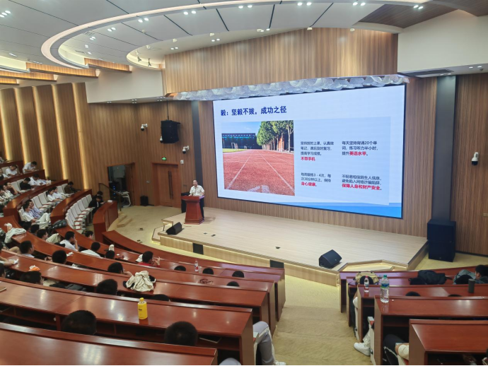 为帮助新生扣好进入大学后的“第一粒扣子”,明确成长方向,AWC万象城娱乐启动了新生入学思政教育系列活动,2025年9月21日在3号教学楼101报告厅召开2025级新生思政教育课。学院党委书记季志刚、学院党委专职组织员王梦琪和全体2025级新生参会,会议由辅导员王浩老师主持。